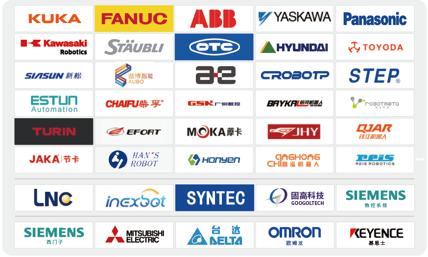 通過多樣化的通信協(xié)議,可與世界主流機(jī)器人進(jìn)行無縫對接,即插即用,無需二次開發(fā),更無需復(fù)雜配置。同時,支持與多種PLC和運(yùn)動控制器進(jìn)行通信,輕松應(yīng)對客戶現(xiàn)場的專機(jī)設(shè)備。除此之外,客戶還可以采用自定義協(xié)議與傳感器進(jìn)行通信。